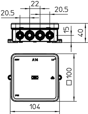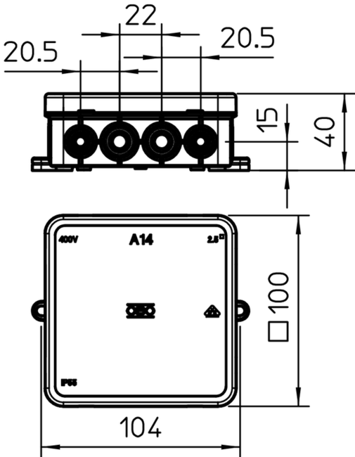 A14 JUNCTION BOX 100X100X40 WITH TERMINAL.